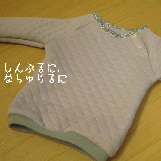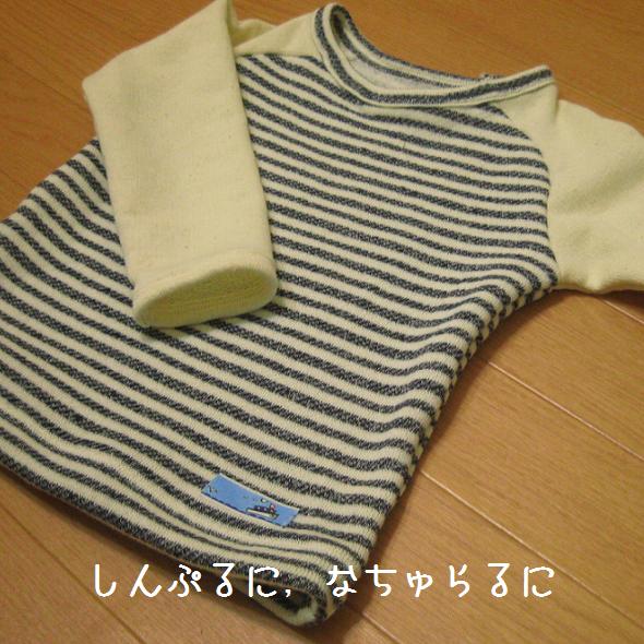 パターン通りに仕上げてから,なんだかいまいち・・・と思い,裾を少しカットしてリブに作りなおしました.たった少しの違いでかなり好みの1着になり,すっかりヘビロテアイテムです.