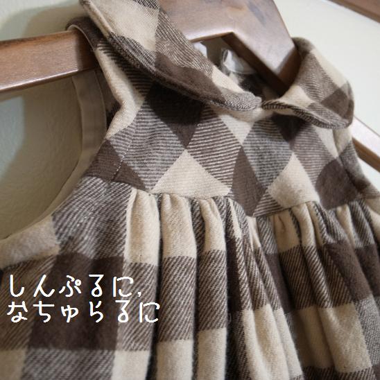 元は半袖のパターンですが,冬なので重ね着しやすいようノースリーブにアレンジしました.と言っても,袖を付けなかっただけですが・・・.そして後ろのあき部分,失敗です.