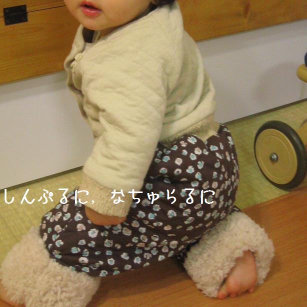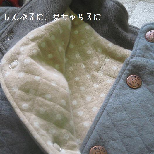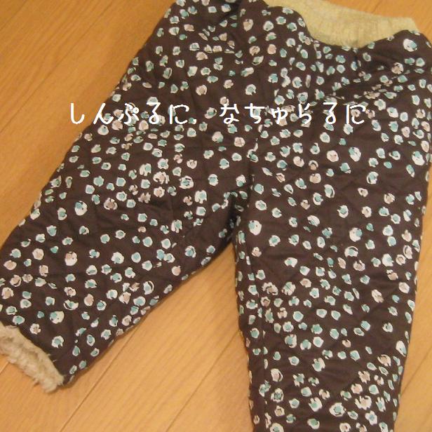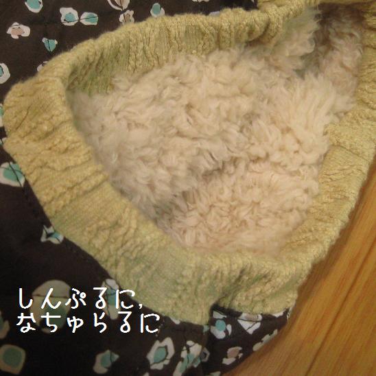 本格的に寒くなる前に,どうしても作りたかった1つ.これをズボンの上からはかせます.表はジャケットの残りで,内側は総ファー!これで,暖かくないわけありません.つなぎの防寒もかわいいですが,上だけ脱がせたい!と言う時には上下別の方が便利.