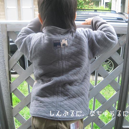 息子のジャケットと同じく生地が薄いので,中に相当着こまないと真冬は厳しそう.