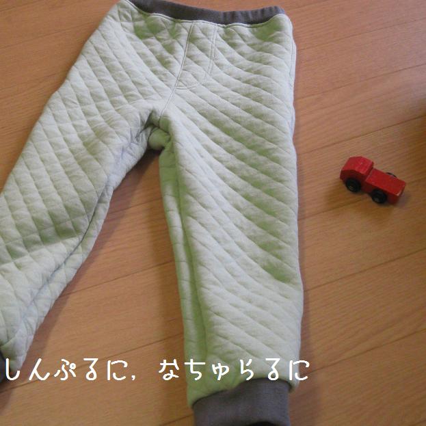 前回のパジャマのズボンはあんまりだったので,今回は同じパターンを使って各パーツを1cmずつ詰めて細身にし,ウエストと裾もリブにしました.