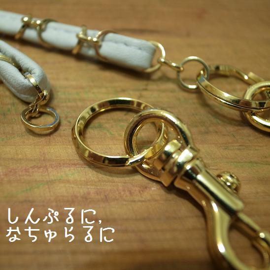 ストラップは,チェーンに革ひもを通して.